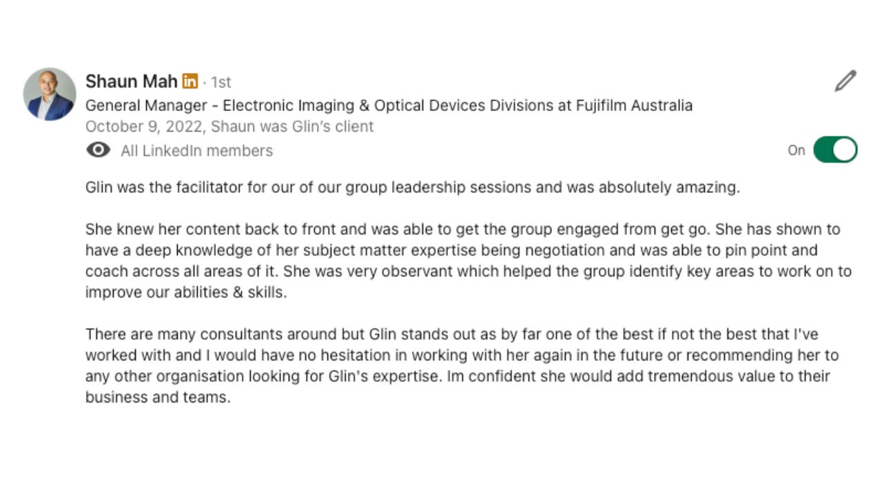 Recommendations: Request personalised recommendations that speak to your key strengths and successful projects or collaborations.