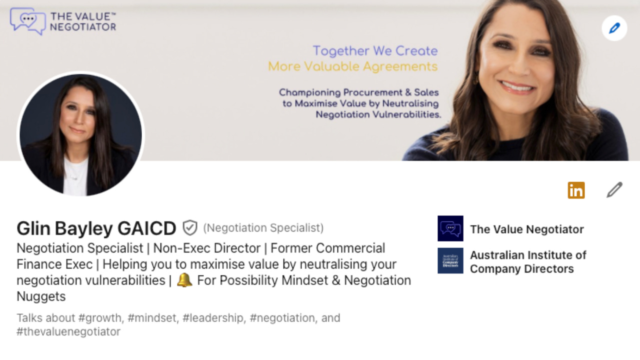 Headline & Background: Instead of just listing your current position, use this space to summarise your PVP. Make it catchy and relevant to your target audience. Don't waste the valuable real estate that is your background banner - use it to communicate the value you bring to others.